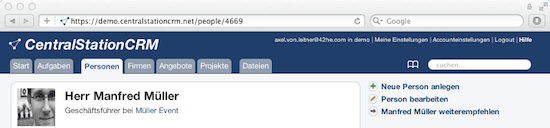 Wenn Sie zukünftig Kontakte, Kunden oder Partner empfehlen möchten, haben Sie es deutlich leichter. Ab heute gibt es auf der Seite Ihrer Personen die Möglichkeit die Kontaktdaten an einen Bekannten oder Freund weiterzuleiten. Das umfasst dann die Stammdaten die Sie in Ihrem CentralStationCRM hinterlegt haben, jedoch keine persönlichen Notizen oder Hintergrund Informationen die Sie eingetragen haben.
