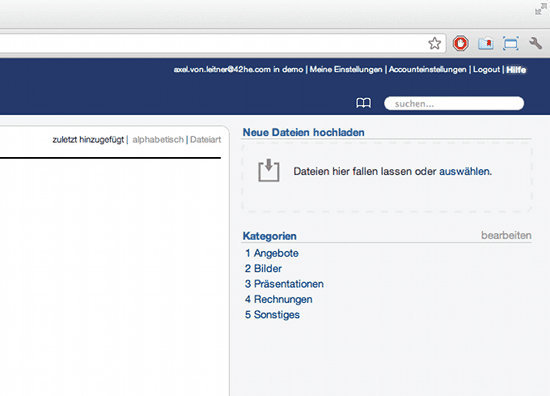 Hochgeladene Dateien können Sie anschließend in eine der vorgegebenen Kategorien einsortieren. Nutzer mit erweiterten Rechten können diese Kategorien einfach umbenennen, entfernen oder neue Kategorien vergeben. So könne Sie die Ordnerstruktur individuell festlegen.