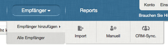 Gehen Sie nun in Ihren Newsletter2Go Account und importieren die Empfänger Ihres CRM Filters. Im Bereich Empfänger können Sie “Empfänger hinzufügen” und den “CRM-Sync” auswählen.