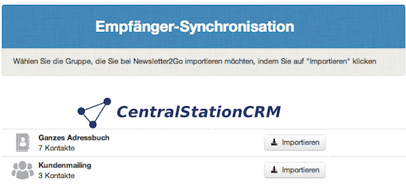Hier werden nun alle von Ihnen gesetzten Filter als Importoption dargestellt. Sie können auch alle Kontakte in Ihrem CentralStationCRM mit Newsletter2Go synchronisieren.