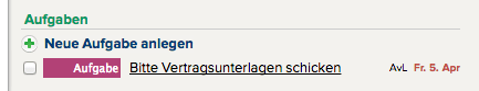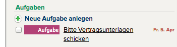 Ein Beispiel, wo wir dies schon tun ist die Anzeige der Aufgaben in der rechten Seitenleiste, bei Personen, Firmen, Angeboten und Projekten.