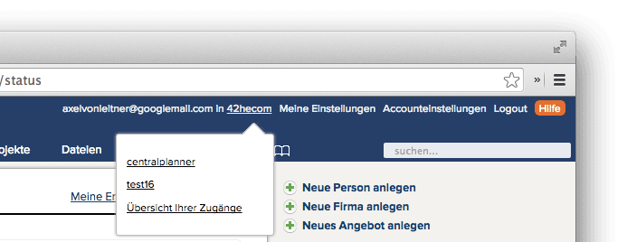 Außerdem gibt es ab sofort eine Übersicht aller Accounts, in denen man arbeitet. Von dort kann man in jeden Account wechseln und sieht anstehende oder überfällige Aufgaben ebenso wie die letzte Aktivität in dem Account.