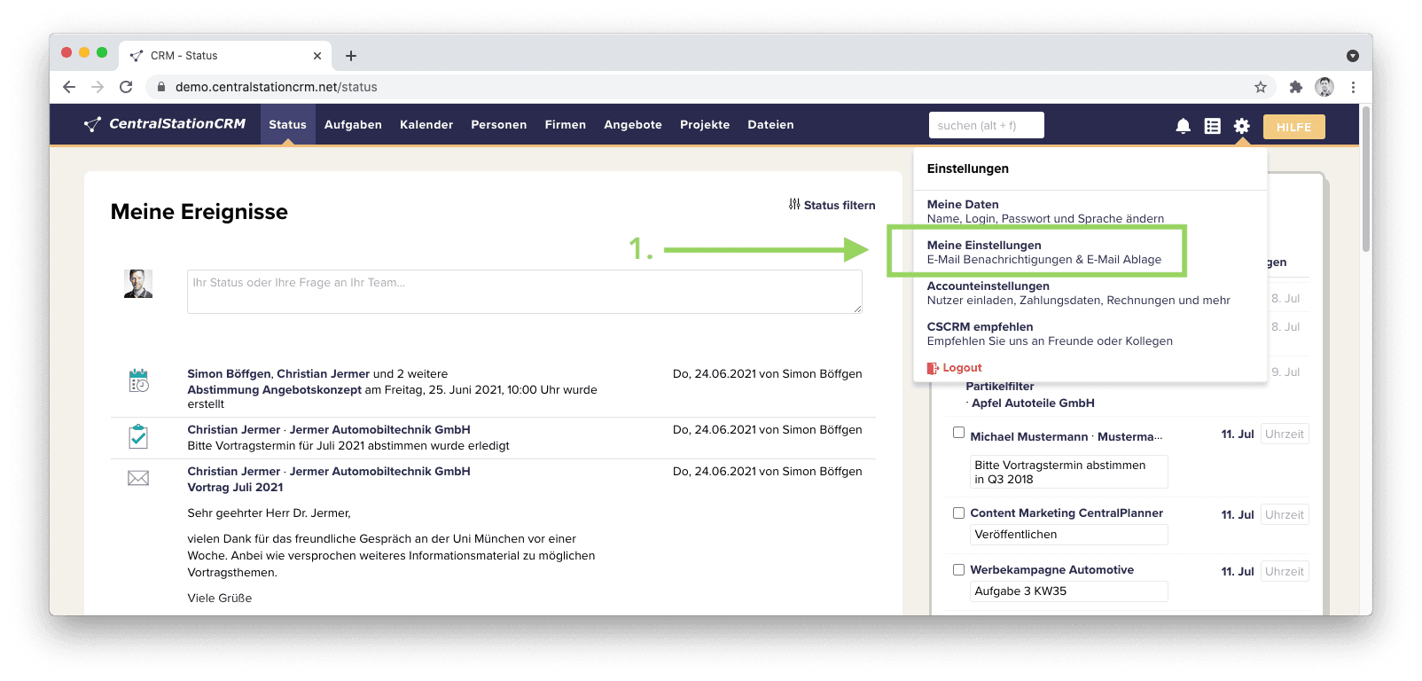 Wählen Sie in Ihrem Account unter “Einstellungen” das Feld “Meine Einstellungen”.