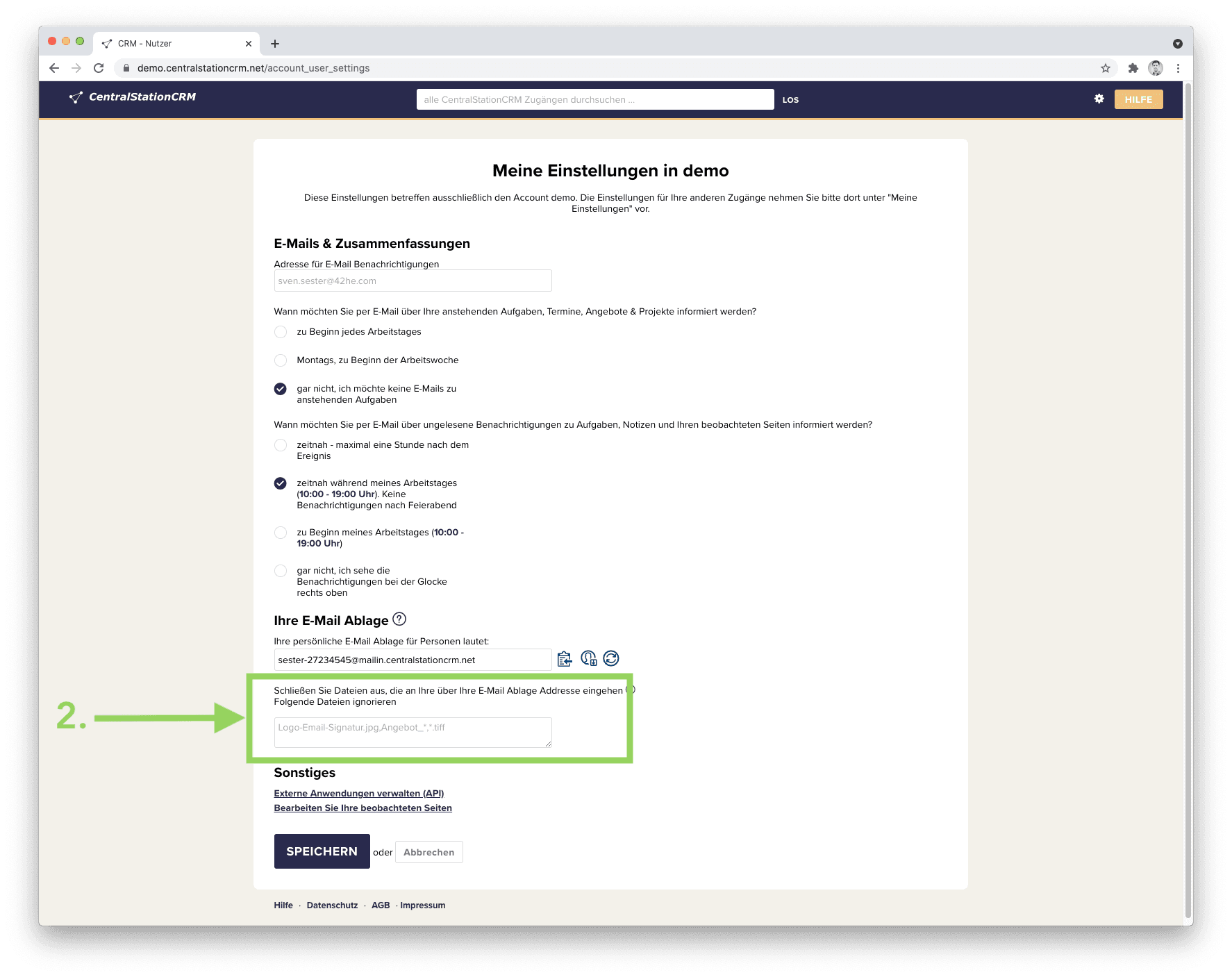 Was Sie dagegen tun können ist, dem CRM mitzuteilen, welche Dateien es in der Ablage ausschließen soll. Um das zu machen gehen Sie wie folgt vor: