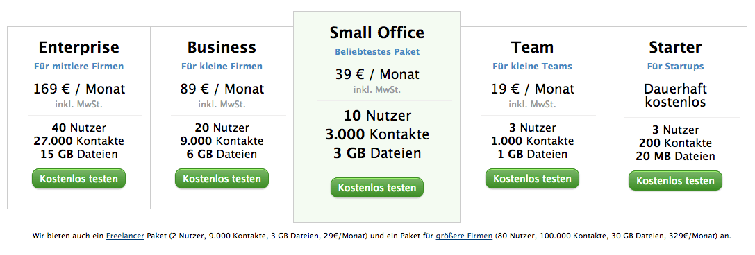 Außerdem freuen wir uns ein Paket speziell für Freelancer und Selbstständige ankündigen zu können. In diesem Paket sollen auch Freelancer langfristig und zu einem fairen Preis arbeiten können, was bei großen Kontakt-, aber niedrigen Nutzerzahlen bislang schwierig war.