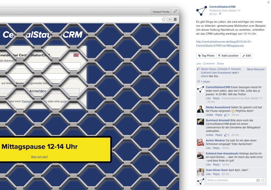 "Bitte dann noch die CentralStationCRM direkt mit einem Lieferservice für die Einnahme der Mittagskost verknüpfen."
