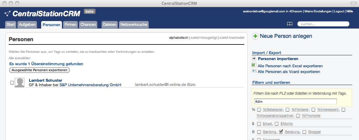 Im Rückblick hat die Personenübersicht wohl die wenigsten Veränderungen mitgemacht, jedenfalls optisch. Funktional ist dieser Bereich einer mit den meisten Finessen und Veränderungen. Die erweiterten Filteroptionen, die Reihenbearbeitung und die Mehrfachauswahl-Optionen haben nicht mehr viel mit den Anfängen aus 2011 gemein.