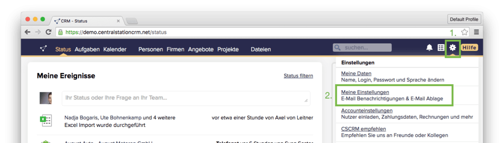 - über die Glocke rechts oben in Ihrem CentralStationCRM Account