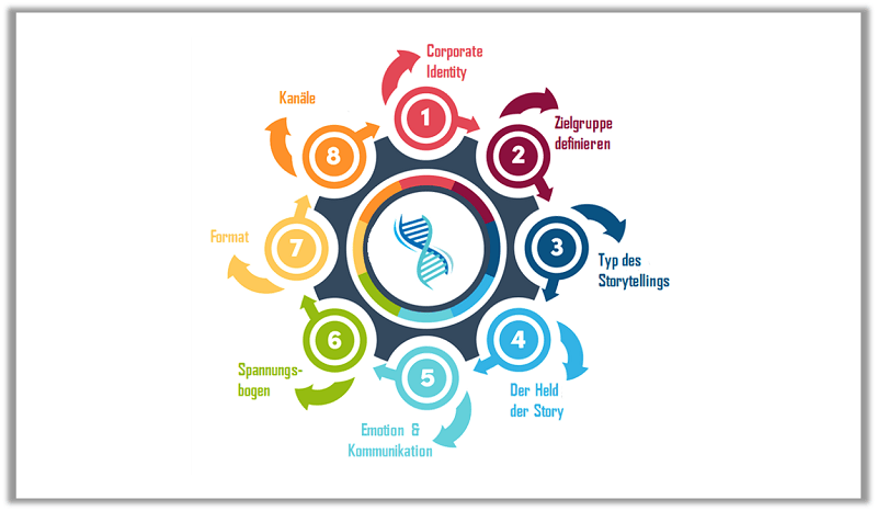 Sie ist Ausgangspunkt der Storytelling-Planung, schließlich soll am Ende eine Geschichte erzählt werden, die zum Unternehmen passt. Auf der Unternehmensidentität aufbauend können Sie sich anschließend an den folgenden Punkten orientieren: