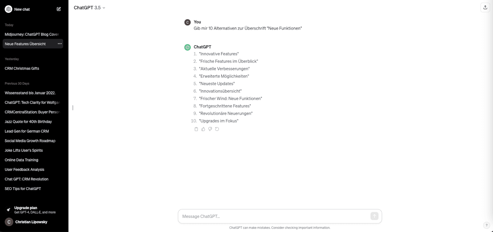 Anders verhält es sich bei Aufgaben, die offener gestaltet sind. ChatGPT kann auch helfen, Variationen für Headlines oder Ideen für Inhalte zu liefern - hier hilft es, nicht zu einordnend zu prompten und gegebenenfalls die Temperatur hochzusetzen, damit die Resultate den Nutzer überraschen können.