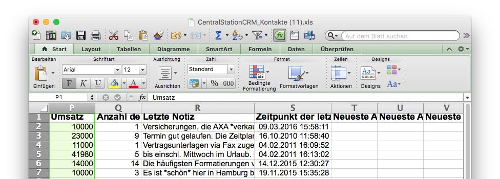 Außerdem findet sich der Umsatz, den Sie mit einer Person oder Firma gemacht haben ab sofort in der Excel Datei. Hierbei handelt es sich um den Gesamtumsatz, also die Summe aller gewonnenen Angebote im CRM.